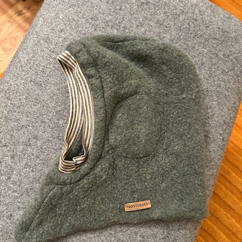 Selger ei kjempe varm og god balaclava fra Nøstebarn. Grå 100% ull. Ekstra stoff over ører. Brukt her fra ca 3 år til 6 år