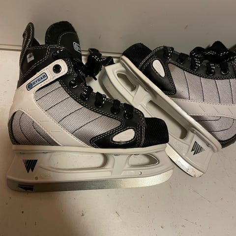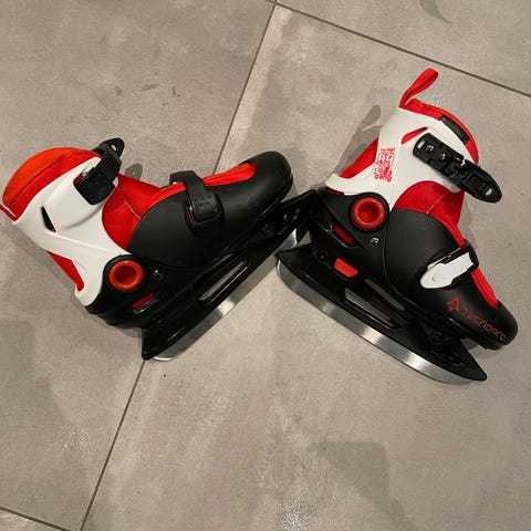 Tecno Pro ishockeyskøyter for barn i størrelse 33. Modellen har snøring foran og fast hælkap for støtte rundt ankelen. Skøytene har svart og grå overdel i syntetisk materiale med polstret innside for økt komfort. Blad i metall tilpasset ishockeybruk. Egnet til barn som skal bruke skøytene til lek på isen eller enkel ishockeytrening. Skøytene er godt brukt og har synlig slitasje. Men mye bruk igjen!