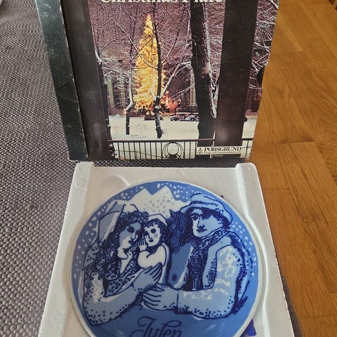 Porsgrund 1971 Juleplatte de luxe tallerken porselen blå og hvit