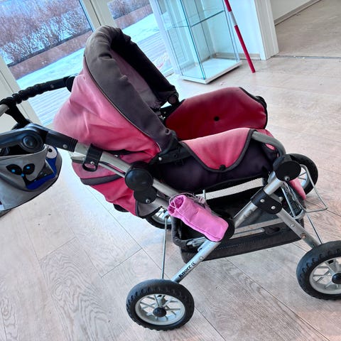 Baby Jogger City Mini barnevogn i svart. Trille med tre hjul og svingbart framhjul. Stoffdeler i tekstil og understell i metall. Vognen har sitteenhet med regulerbar rygg, fempunktssele og varekurv under setet. Egnet til bruk for ett barn. Den gis bort pga høy slitasje.