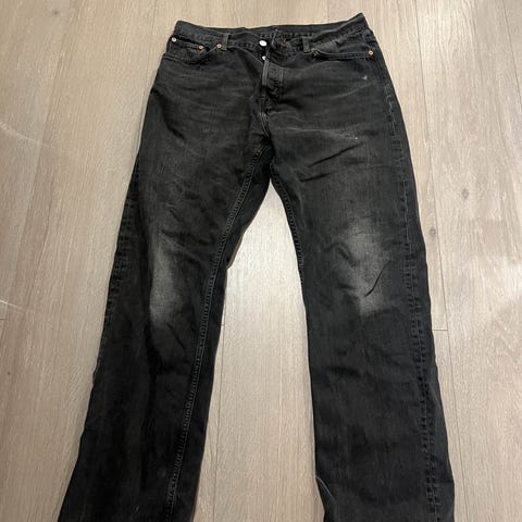 Selger en pent brukt svart Levi’s 502 jeans i størrelse 28/32. Buksen er i god stand uten slitasje, hull eller skader. Klassisk passform som sitter godt og passer til både hverdagsbruk og penere antrekk.