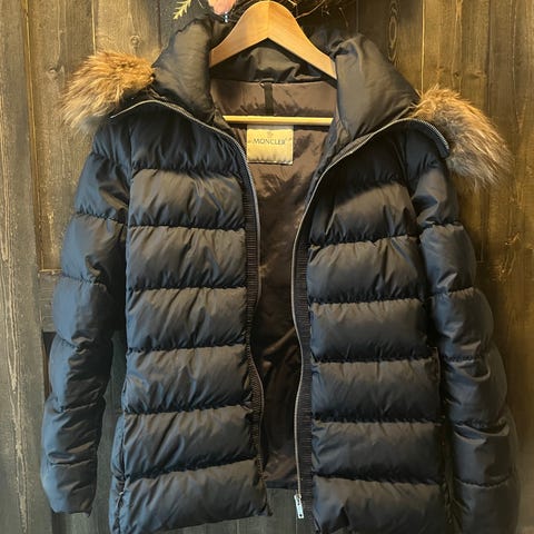 Moncler vinterjakke i dun til dame i størrelse M. Jakken er blå og har quiltet design med vannavvisende yttermateriale og fyll av dun, sertifisert under DIST (Down Integrity System & Traceability). Modellen har glidelåslukking i front, høy krage og lange ermer. Passer som varm ytterjakke i kaldt vær.