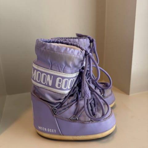 Selger et par tilnærmet ubrukte Moon Boot "The Original" i den nydelige gullfargen (Glance Gold). Støvlene har bare vært prøvd utendørs to ganger, begge gangene i ren, hvit nysnø. Dette er den ikoniske modellen med høyt skaft som er både supervarme og stilige. De er perfekte for vinteren og afterski!