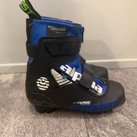 Alpina Frost skisko for barn i størrelse 30. Modellen har blå og lyse detaljer med borrelåsstropper over vristen for enkel justering og god støtte. Overdelen er laget i syntetisk materiale med høy ankel for ekstra stabilitet. Skoene har glidelås foran under stroppene og er egnet som langrennssko til barn. Passer til barn som trenger stabile og varme skisko i denne størrelsen.
