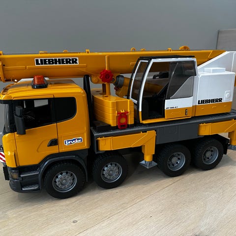 Bruder MAN lastebil med gravemaskin lekebil gul