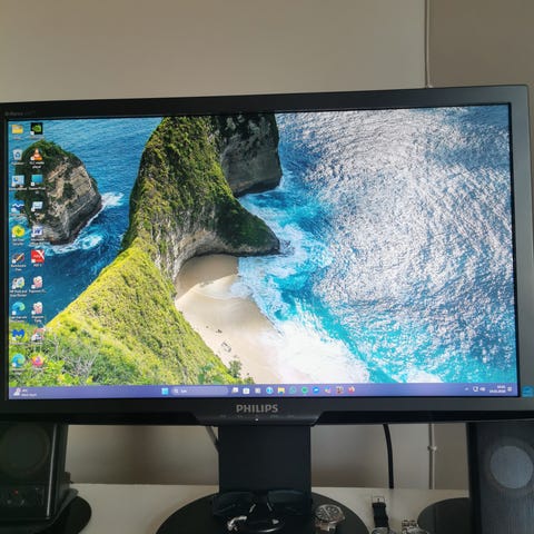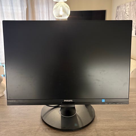 Skjermen har en størrelse på 22 tommer, egnet til bruk med PC eller spillkonsoll. Den leveres med bordstativ og tilkoblingsmuligheter som vises på bildene. Passer til vanlig kontorbruk, enkel bilde- og videovisning eller som ekstra skjerm i hjemmet.