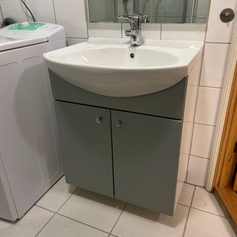 Servant og møbel er separert. Møbelet har bredde 80 cm. Speil medfølger ikke.