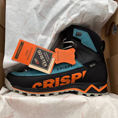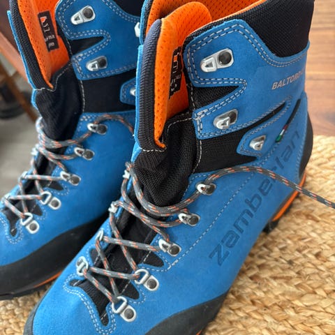 Scarpa Ribelle Lite fjellstøvler i størrelse 37,5. Modellen er en lett og teknisk tursko til fotturer, med overdel i syntetiske materialer og forsterkninger rundt tå og hæl. Skoene har turkis og svart farge med oransje detaljer, snøring med metallkroker og kraftig yttersåle fra Vibram med grovt mønster for godt grep på variert underlag. Egnet til fotturer og annen bruk i ulendt terreng.