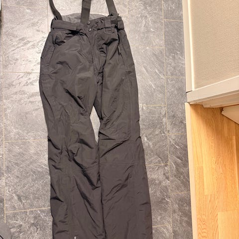 Freeride skibukse i svart farge, størrelse 16. Buksen har seler og rette ben. Egnet som ytterbukse til ski og annen vinteraktivitet. Materialet fremstår som et lett, vannavvisende ytterstoff med glatt fôr på innsiden. Justerbare seler og lukking i livet gir mulighet for tilpasning.