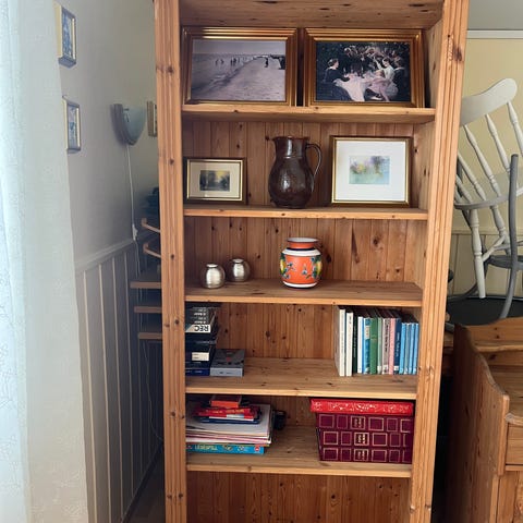 Høy klokkehus. Håndlaget. I ubehandlet furu. Høystbydende over 2000,- Bør absolutt hentes.