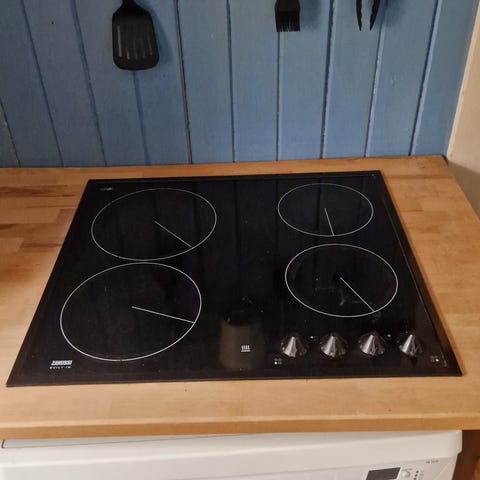 Zanussi induksjonstopp. Platetoppen har flere kokesoner markert på glassflaten og berøringspanel i front. Egnet for innbygging i kjøkkenbenk og til bruk med kokekar som er kompatible med induksjon. Passer til vanlig matlaging og daglig bruk på kjøkkenet.