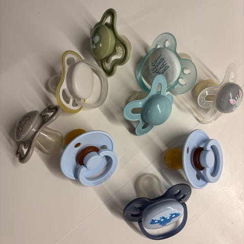 Diverse smokker og 1 smokkesnor selges da jenta ikke ville ta smokk. De fleste er ubrukt, noen prøvd et par ganger.
