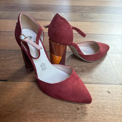 Kule røde pumps med behagelig hælhøyde fra Shanibar. Nypris over 600kr.