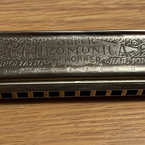 Selger et velholdt kromatisk munnspill av høy kvalitet: HOHNER Chromonica 280/64 i tonearten C, merket “4 Chromatic Octaves Professional Model”. Dette er en klassisk 16-hulls kromatisk modell med skyveknapp, som gir full kromatikk og et stort register på fire oktaver (64 toner). Den egner seg godt til alt fra viser og jazz til mer melodisk spill der du ønsker tilgang til alle halvtoner.