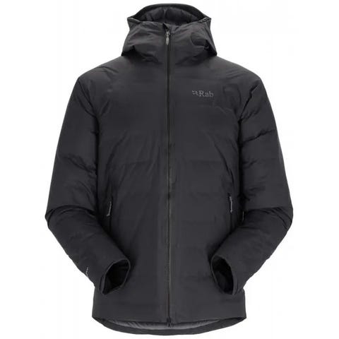 Rab vinterjakke for herre i størrelse XXL. Jakken er blå og laget i polyamid med Pertex Quantum Pro-ytterstoff, som gir lett og slitesterk beskyttelse. Modellen har hette, gjennomgående glidelås foran og glidelåslommer i sidene. Vattert konstruksjon gir isolasjon egnet for kalde vinterforhold og generell utendørsbruk.