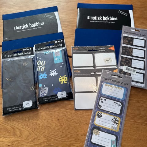 Elastisk bokbind og navnelapper sett flerfarget
