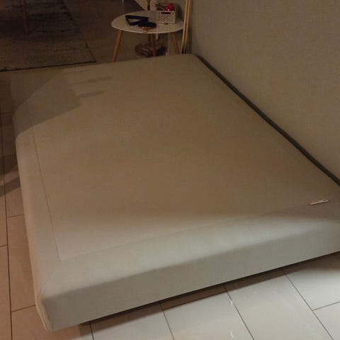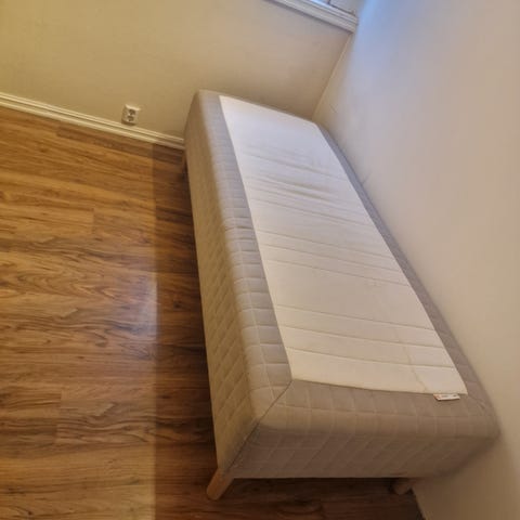 Ikea skårer seng. Solid seng. Helt ny overmadrass kan følge med for et tillegg. Ellers har jeg en brukt overmadrass tilgjengelig også gratis.