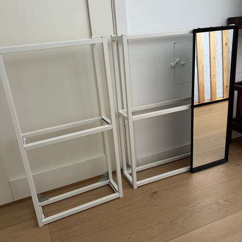 Hyllene holder mye vekt, jeg har hatt 2 1 liters Shampo og balsam flasker på de + en del annen såpe, uten at det har vert noe problem. Hyllen har holdt seg fint inntil veggen, så lenge man sørger for at den står godt i spenn. Har monteringsanvisningen på PDF.