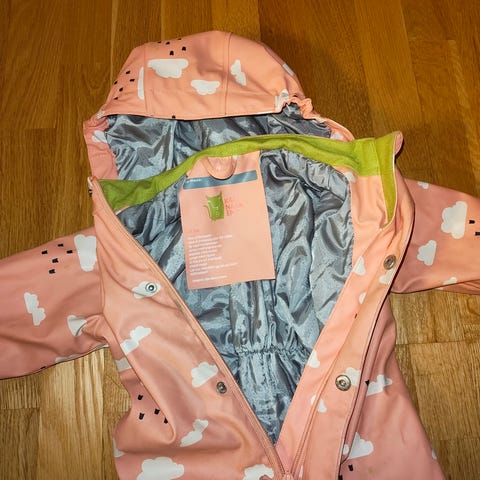 Minimalt brukt regndress, kjøpt ny i høst. Dressen er vasket nå før salg etter vaskeanvisning og uten sentrifugering.