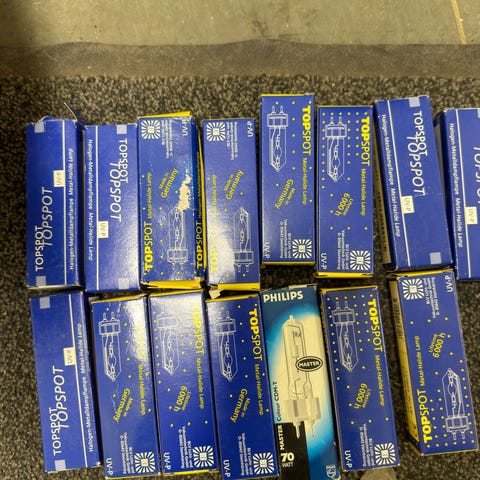 Osram HQI-TS 500W metallhalogenpærer. Egner seg for bruk i armaturer som er tilpasset HQI-TS metallhalogenlamper med effekt på 500 watt. Pærene gir kraftig belysning og brukes ofte i større rom, industri, utendørsanlegg eller andre installasjoner som krever høy lysstyrke. Selges som avbildet på bildet.