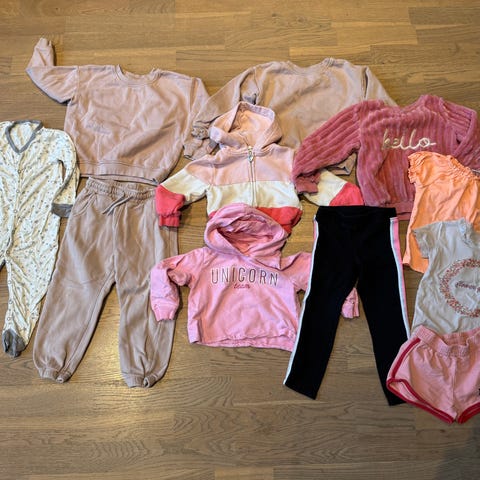 Pent brukte klær, kan vare merke på innsiden etter navnelapp. Strl 98,104 og 98/104, passer fint fra 3 til 4 år. I pakke er det 2 ull sett og 4 ulltrøyer, 8 gensere, 2 fleecejakker og fleecedress. Det er 5 tynne jakker, 8 bukser, 1 vindjakke 2 vester, 1 tskjorte, 1 skjorte, 4 kjoler, 1 ballerinakjole og 1 jeans sett med jakke og skjørt. Merker som name it, sinsay, newbi, lindex, h&m,reflex osv.