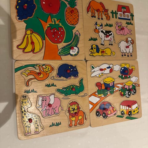 Noe slitt i kantene. Den ene brikken er litt ødelagt, se bilde. Liten bit brukket av av øverste lag.