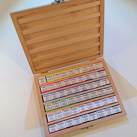 Skrinet inneholder faste akvarellfarger.