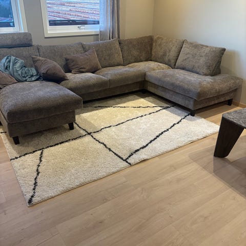 IKEA Stornes teppe i gråtoner. Teppe med flatvevd struktur som gir en jevn og nøytral overflate. Passer godt under sofagruppe eller spisebord i stue eller andre oppholdsrom. Nøytral farge som er lett å kombinere med ulike møbler og interiørstiler.