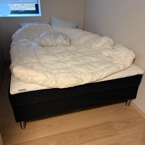 Senga er rundt 10 år gammel, men er pent brukt og de siste årene er den brukt som gjesteseng.