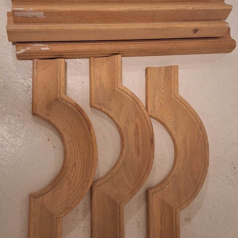 Tre kiste, rottingstol og hvit romdeler. Kisten er laget i tre med buet lokk og metallbeslag, egnet til oppbevaring av ulike gjenstander. Innvendig har den god plass og kan brukes til for eksempel tekstiler eller annet utstyr. Rottingstolen er en lenestol i flettet rotting med høy rygg og armlener, egnet som sittemøbel i stue, vinterhage eller på overbygget uteplass. Romdeleren er en frittstående skjerm med tre sammenhengende paneler i lys/hvit farge, med lameller øverst og tette felt nederst, egnet til å skjerme av eller dele opp et rom.