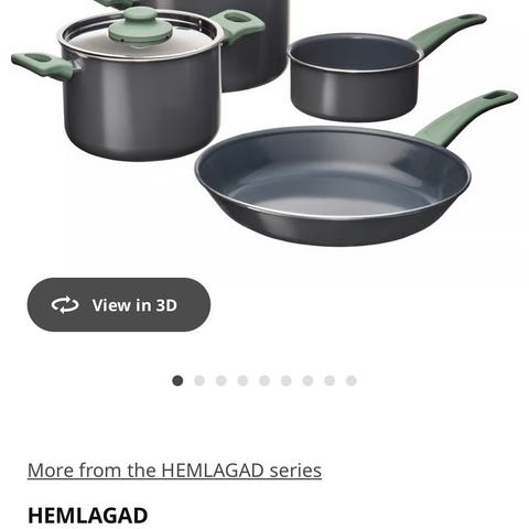 Veldig lite brukt da det ikke er induksjon og vi kun har induksjon nå. 2 av stekepannene er brukt mer enn de andre, se bilder.