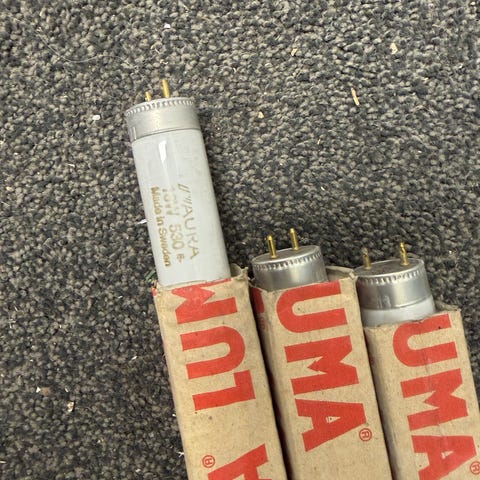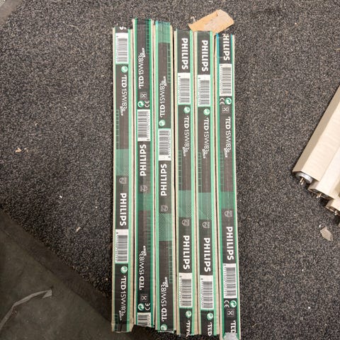 Samling med U-formede kompaktlysrør fra Osram og Radium. Lysrørene leveres i originalemballasje slik de fremkommer på bildet. Egnet som erstatningsrør i armaturer som bruker denne typen kompaktlysrør. Spesifikke effekter, sokkeltyper og lysfarger varierer mellom de ulike rørene i samlingen og kan avleses på emballasjen.