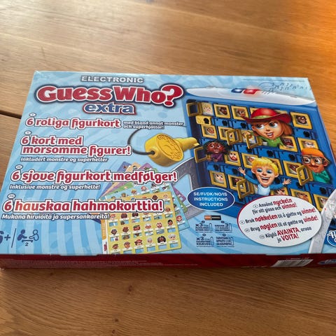 Hasbro Gjett hvem? brettspill for barn fra 6 år. Klassisk spørre- og gjettespill der to spillere velger hver sin hemmelige figur og stiller ja/nei-spørsmål for å finne ut hvem motstanderen har valgt. Spillet leveres med spillbrett med oppfellbare ruter og kort med ulike figurer. Anbefalt alder er 6 år og oppover, og spillet er beregnet for 2 spillere. Egner seg som familiespill og til enkel logisk trening og observasjon for barn.