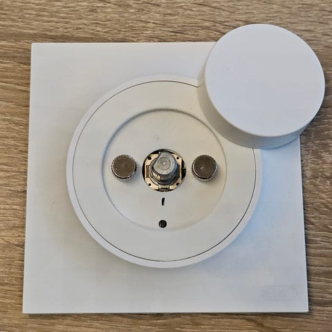 Vippebrytere i bakelitt med festeplate i tre og koblingsbokser i porselen for åpent ujordet anlegg. Reprodusert for å passe stilmessig i gamle hus. Alt er ubrukt i emballasje untatt en lysbryter som har vært montert og tatt ned igjen.