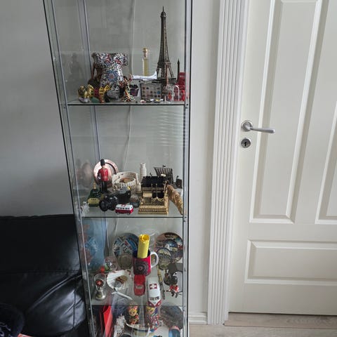 Fin skap selges med spotlight, øverste er det glass hylle og nederste er det trehylle.