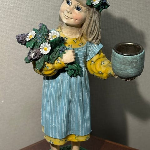 Vintage svensk keramikkfigur – jente med liten kurv