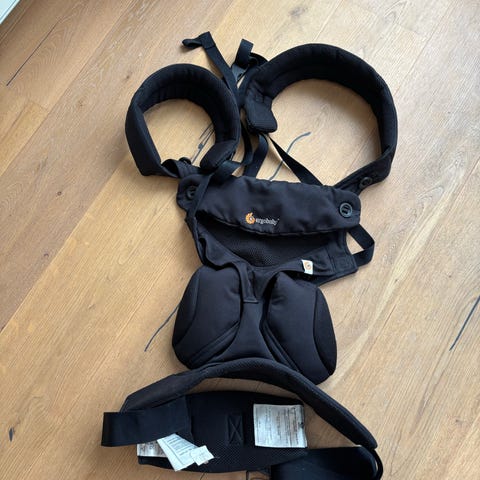 Ergobaby 360 bæreselle i to-farget design med svart utside og beige innside. Bæreselen har polstrede skulderstropper og bred midjestropp for jevn vektfordeling. Justerbare stropper og spenner gir mulighet for tilpasning til ulike brukere. Egnet for bæring av baby/barn foran, men også bak på ryggen for større barn.