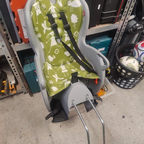 Hamax barnesykkelsete for montering bak på sykkel. Setet er beregnet for barn opptil ca. 22 kg. Farge grå med svart innvendig polstring. Leveres med bøyle for montering på sykkelramme og fotstøtter med justerbare stropper. Stropp på venstre fot er vekke. Egnet til transport av barn på hverdagsturer og fritidssykling.
