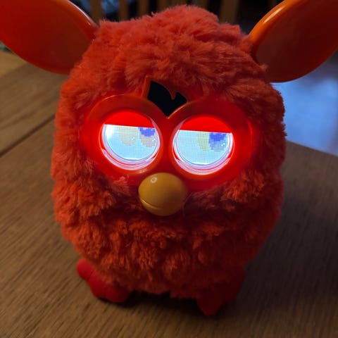 Furby interaktiv leke i svart farge. Elektronisk figur som reagerer på berøring, lyd og bevegelse, og som utvikler personlighet basert på hvordan den blir behandlet. Egnet som underholdningsleke for barn som liker interaktive og animerte figurer. Leveres i original emballasje slik som vist på bildene.