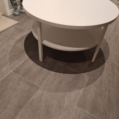 Rundt bord i hvit med ekstra hylle