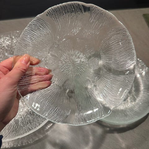 glassasjetter /tallekner i serien Aspen Leaf fra Arcoroc, med et karakteristisk bladmotiv i strukturert glass.