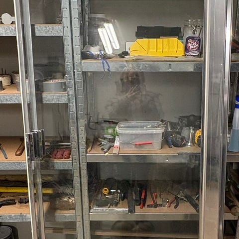 Kabinettet er helt og pent silikonlistene er gulnet, men de kan enkelt byttes.