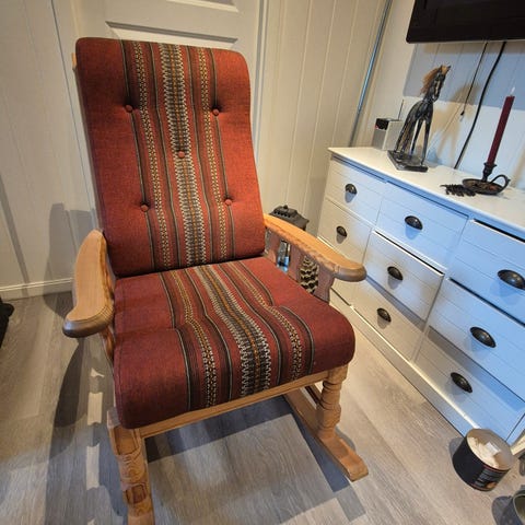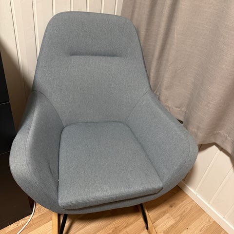 Gyngestol fra Jysk. Pent brukt i 1.5 år selv om det er en skade i sømmen (se bilde). Selges derfor rimelig.