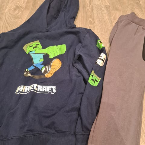 H&M Minecraft T-skjorte for gutt i størrelse 170. T-skjorten er blå og laget av bomull. Den har Minecraft-motiv med figur og tekst på fronten. Kortermet modell med rund hals, egnet til hverdagsbruk.
