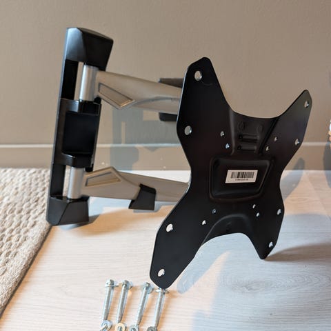 Solid veggfeste for TV eller PC-monitor med justerbar arm. Festet er svingbart og tiltbar.