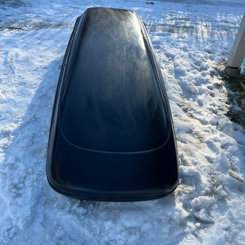 Selger en brukt Skiguard takboks i svart farge.