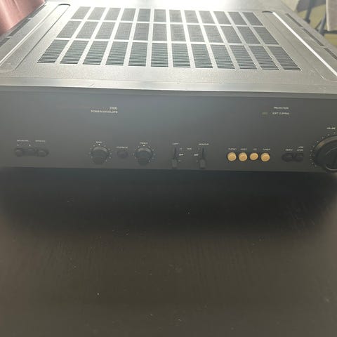 Forsterkeren er i god fysisk stand med normale bruksmerker (se bilder for detaljer på volumknapp). Den er ikke nylig funksjonstestet, men antas å fungere som den skal. Ved eventuelle feil kan varen returneres. Fjernkontroll medfølger ikke.
