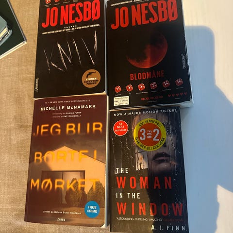 Jo Nesbø, Hjorth Rosenfeldt, Tom Egeland, Chris Ryan og Stephen King.