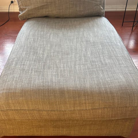 Pent brukt sofa og sofastol til salgs, har ikke målene for øyeblikket.