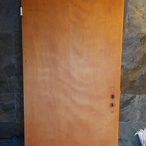 Bredde ca 132 cm. Høyde ca 239 cm. Skinner og feste medfølger. Kan males.